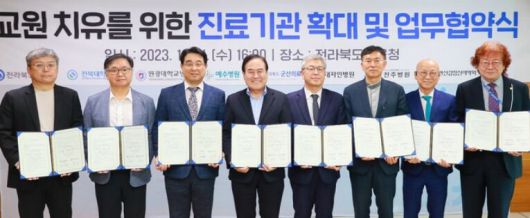 서거석 전북교육감은 “지역 6개 대형병원과 대한신경정신의학회가 교원의 정신적 상처를 치료하고 마음을 보듬어 주는데 함께 하게 돼 기쁘다”며 “교원의 치료를 적극 지원해 건강한 교육 활동이 이뤄지도록 더욱 노력할 것”이라고 말했다.
