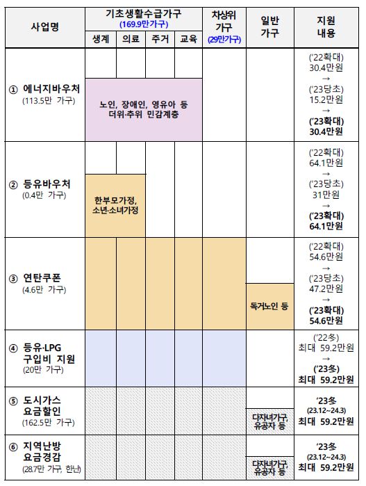 2023년 동절기 난방비 지원 요약 〈자료 산업통상자원부〉 |