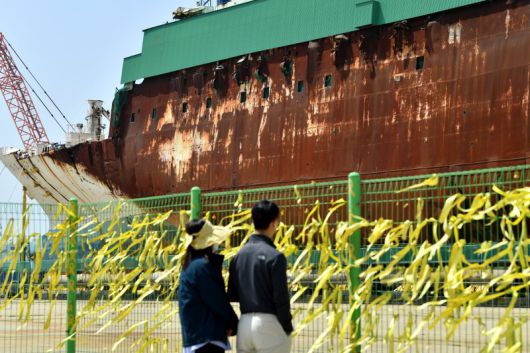 [목포=뉴시스]김혜인 기자 = 세월호 참사 9주기를 맞은 16일 오전 전남 목포시 목포신항만 내 세월호 거치 장소에 추모객의 발길이 이어지고 있다. 2023.04.16. hyein0342@newsis.com /사진=뉴시스 |