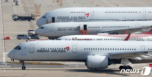 (인천공항=뉴스1) 김성진 기자 = 아시아나항공의 화물사업 매각안이 가결된 2일 인천국제공항 전망대에서 바라본 계류장에 아시아나항공 항공기가 주기하고 있다. 아시아나항공은 이날 이사회에서 유럽연합 집행위원회(EC)에 제출할 대한항공의 시정조치안에 대해 동의하는 안건을 표결 끝에 가결했다. 이 시정조치안에는 독과점 우려를 해소하기 위해 아시아나 화물사업을 분리 매각하는 방안이 포함돼 있다. 2023.11.2/뉴스1