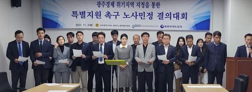 노사민정은 이날 광주시의회 시민 소통실에서 호소문을 발표하고 "광산구를 고용위기지역, 중소기업 특별지원지역, 산업위기 대응 특별지역으로 지정해야 한다"고 요청했다.