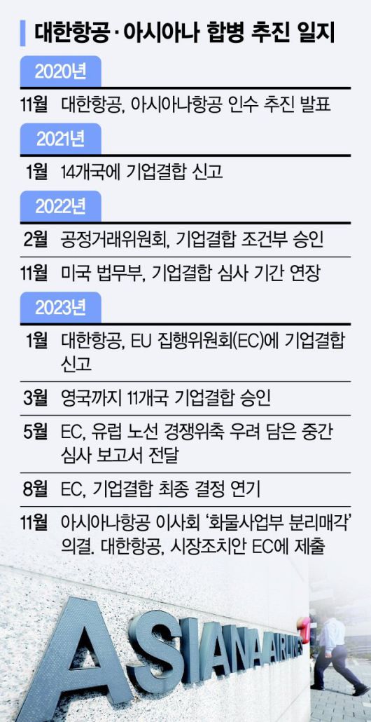대한항공은 아시아나항공 이사회의 의결에 따라 시정조치안을 바로 EC에 제출할 계획이다. 국가별로 EC는 내년 1월 말 심사 승인, 일본은 내년 초 심사 종결한다는 목표다. 미국의 경우 미국 법무부(DOJ)와 시정조치 방안 협의를 통해 경쟁제한 우려를 해소할 계획이다.