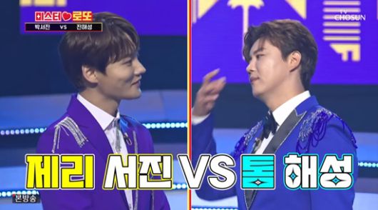 '미스터로또'의 공식 톰과 제리 박서진과 진해성은 퍼포먼스 대결로 맞붙으며 이목을 집중시켰다.