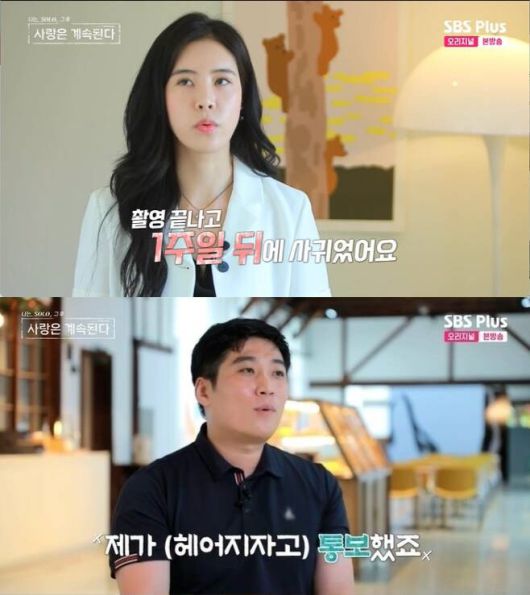 현숙은 "영철과 만난 지 1년 3개월 됐다. 촬영 끝나고 일주일 뒤 사귀었다"며 "난 바로 사귀는 줄 알았는데, (영철은) 정식으로 고백하고 사귀고 싶었나 보다. '나랑 정식으로 사귀어 놀래?'라고 쓴 편지를 줬다. (연애) 초기엔 행복해서 눈물을 많이 흘렸다. 오빠가 휴가 내고 내가 출근한 사이에 와서 갈비찜을 해놓았다. 스테이크 맛에 감동해 운 적도 있다"고 했다.