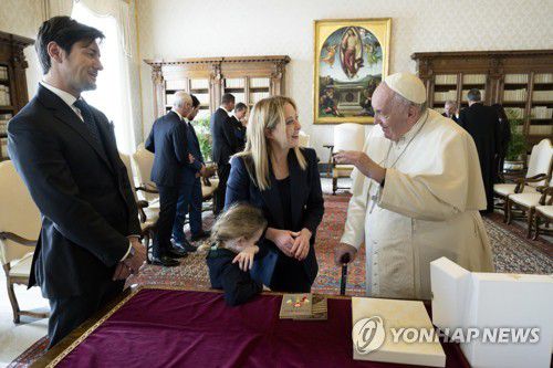 올해 1월 바티칸에서 프란치스코 교황 만난 멜로니 가족 |