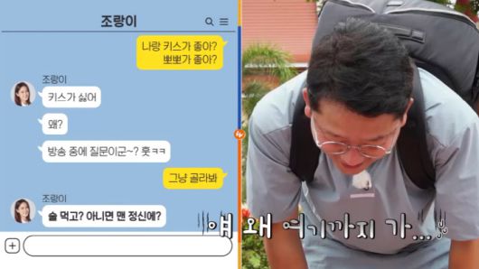 (서울=뉴스1) 소봄이 기자 = '독박투어' 김준호가 여자친구 김지민에게 "키스가 좋아? 뽀뽀가 좋아?"라고 물었다가 한숨을 내쉰다.