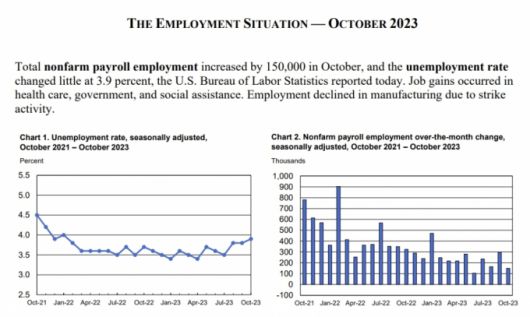 미국 노동시장은 차츰 둔화세를 보이고 있다. 민간 고용정보업체에 이어 노동부 통계에서도 고용시장의 상황이 예상을 하회하는 결과를 나타내고 있어서다. 이날 미국 노동부는 10월 비농업 일자리수가 15만개 증가했다고 밝혔다. 이는 예상치인 17만개를 2만개 가량 하회한 수치다. 전문가들은 10월에 전미자동차노조(United Auto Workers)가 파업을 벌이며 노사협상이 교착상태에 있었기 때문에 제조업 순 일자리 손실로 이러한 격차가 나타났다고 지적했다.