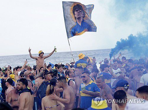 브라질 해변에 모인 아르헨티나 보카 주니어스 팬들 |
