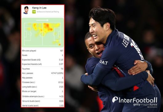 주요 스텟만 봐도 활약상이 느껴진다. 62분 동안 볼 터치 73회, 패스 성공률 100%(47회 시도-47회 성공), 키패스 1회, 롱볼 성공률 100%(2회 시도-2회 성공), 드리블 성공률 75%(4회 시도-3회 성공), 지상 경합 성공률 75%(8회 시도-6회 성공) 등이 있다. 축구 통계 매체 '후스코더드닷컴'은 이강인에게 7.9점을 부여했다. 멀티 도움을 기록한 하키미(8.3) 바로 다음이었으며 뎀벨레(7.7), 음바페(7.1)보다 높은 점수였다.
