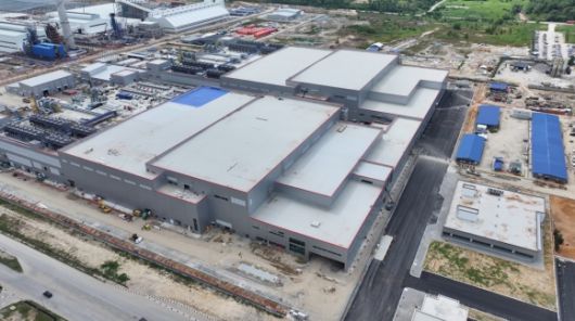 SK넥실리스 말레이시아 동박공장 전경. 첫 번째 공장(위 건물)은 지난달 상업생산을 시작했다. 2공장은 내년 상반기 상업생산을 시작할 예정이다. SKC제공 |