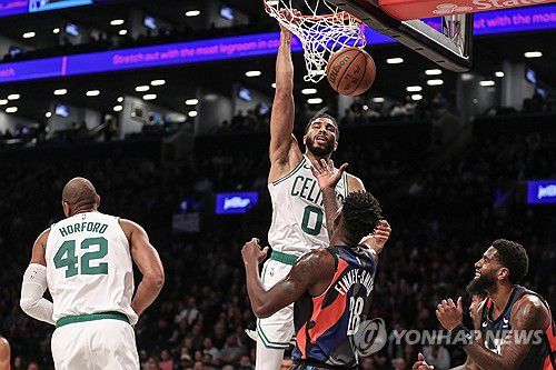 테이텀은 32점 11리바운드로 만점 활약했고, 쌍포 브라운도 23점을 넣었다.