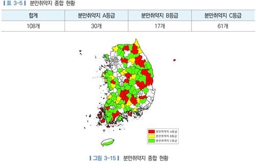 이런 접근성과 의료이용 모두 취약한 경우 A등급으로, 두 가지 중 한 가지만 취약한 경우 B등급으로 구분했다. 또 A·B등급은 아니지만 배경인구, 수요 부족 등을 고려할 때 분만실 운영이 어려운 지역을 C등급으로 분류했다.