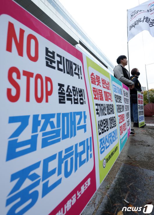 매각 중단 요구하는 아시아나항공 노조