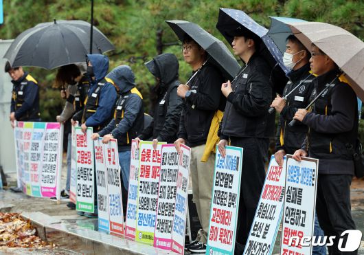 빗속 집회 갖는 아시아나항공 노조