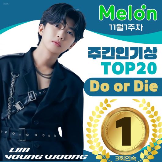 가수 임영웅이 멜론 주간 인기상에서 신곡 자작곡인 'Do or Die'로 1위를 차지했다.