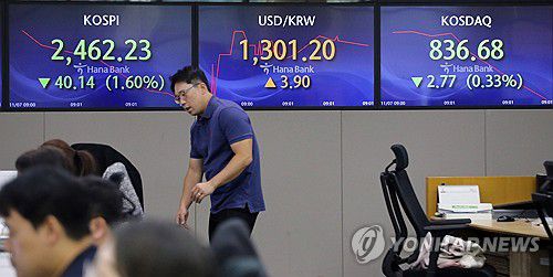 (서울=연합뉴스) 이민영 기자 = 코스닥 지수가 급락하면서 7일 프로그램매도호가 일시효력정지(사이드카)가 발동했다.