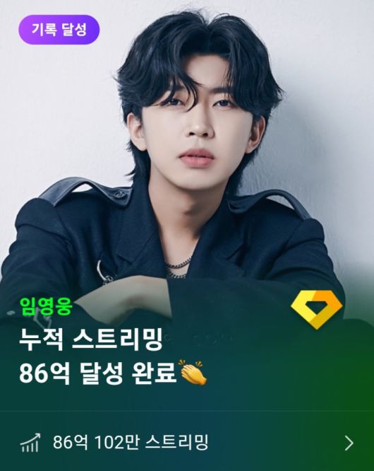 뮤직플랫폼 멜론의 '멜론의 전당'은 국내외 아티스트 및 국내 발매 앨범의 멜론 내 기록을 축하는 명예의 공간. 멜론 내 발매 음원 누적 스트리밍 수가 10억(1 billion) 이상을 달성한 아티스트를 기념하는 '아티스트 부문(빌리언스 클럽)'에는 총 101팀이 올랐다. 임영웅은 86억회로 역대랭킹 2위로 올라서면서 다이아 클럽 달성을 위해 달리고 있다.