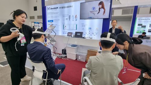 스타트업 12곳 가운데 더블엠소셜컴퍼니는 이날 햅틱 엑츄에이터 연동형 보건 교육 시뮬레이션 플랫폼(제품명:널센스)를 소개했다. 더블엠소셜컴퍼니는 현실공간 움직임을 가상공간에 구현, 임상교육 분야 트레이닝 솔루션을 개발하고 있는 기술과 교육을 융합한 임상교육 전문기업이다.