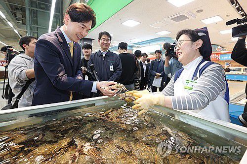 (서울=연합뉴스) 김윤구 기자 = 해양수산부는 박성훈 차관이 9일 오후 홈플러스 영등포점을 방문해 수산물 물가와 명태 등 정부 비축 물량 공급 상황을 살피고 수산물 할인행사 상황도 점검한다고 밝혔다.