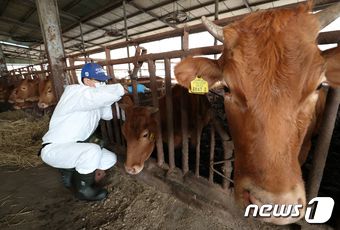 1일 오전 경남 창원시 의창구 대산면 한 축산 농가에서 소 바이러스성 감염병인 '럼피스킨병' 백신 접종이 이뤄지고 있다. 2023.11.1/뉴스1 ⓒ News1 윤일지 기자 |