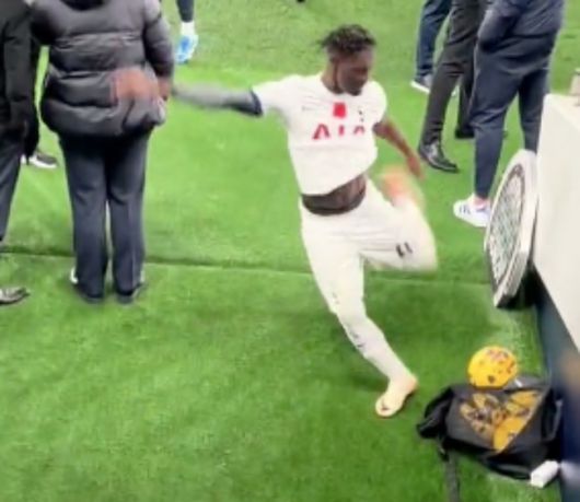 옆에서 이 상황을 지켜보던 손흥민도 다가갔다. 손흥민은 갤러거와 약간의 대화를 주고받으며 상황을 진정시키기 위해 노력했다. 하지만 비수마의 분노는 여기서 그치지 않았다. 매체는 "비수마는 터널을 내려가는 동안 화가 나서 축구공 가방을 차는 모습이 목격됐다"고 전했다.
