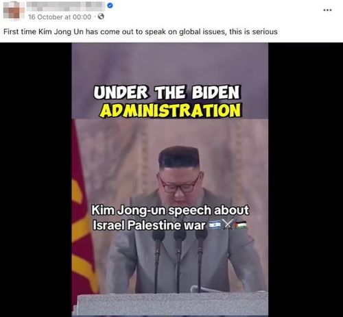 한 네티즌은 김 위원장이 이스라엘과 팔레스타인 전쟁을 언급하며 "바이든 행정부 아래에서 매년 분쟁이 발생했다"고 말했다는 자막이 달린 영상을 올렸다.