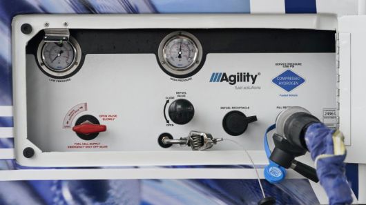 미국 수소연료전지 업체 플러그파워가 유동성 위기 가능성을 경고한 뒤 10일(현지시간) 주가가 반 토막 났다. 2021년 3월 16일 오하이오조 캔튼에서 수소연료전지버스에 수소를 충전하고 있다. AP뉴시스 |