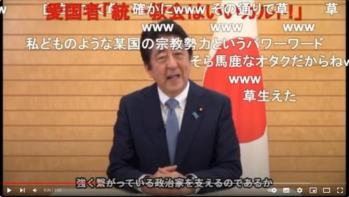 스가 전 총리를 담은 가짜 동영상은 “실패에 실패를 거듭해 일본 전체를 적으로 돌려버렸다”고 말하는 모습이 들어있다.