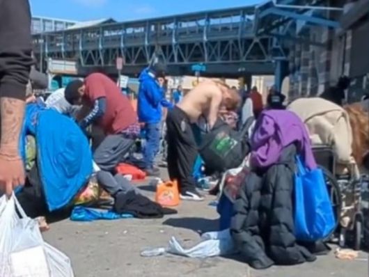미국 필라델피아 켄싱턴 에비뉴 거리에서 마약 중독자들이 몸을 꺾은 채 서 곳곳에 서 있다. CNN 캡처 |