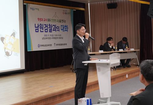 (남원=연합뉴스) 임채두 기자 = 전주지검 남원지청은 남원 수학체험센터에서 남원교육지원청과 '학생·교사 모두 안전한 교실을 만드는 대화'를 진행했다고 12일 밝혔다.