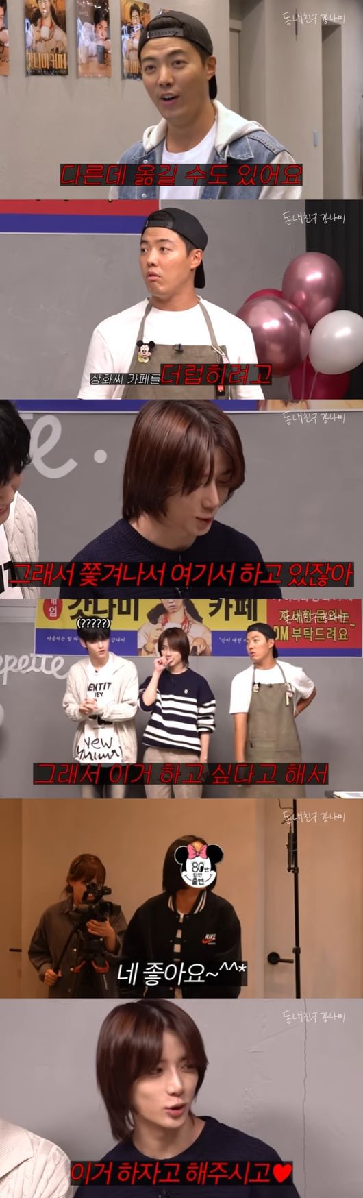 [OSEN=김나연 기자] 방송인 강남이 집에서 쫓겨나 이상화 카페를 어지럽혔다.