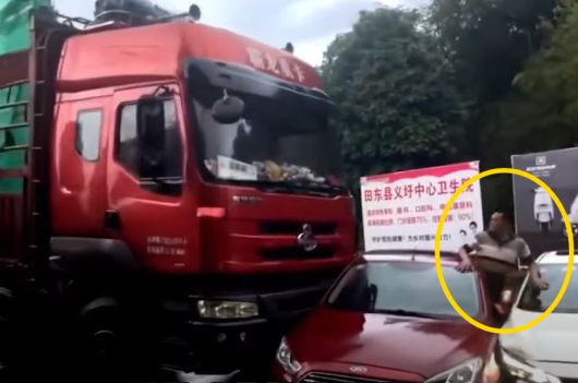 6일 중국 언론 다중왕(大衆網) 등에 따르면 이날 중국 남부 광시장족자치주의 바이써시에서 대형 트럭 운전자 A씨와 붉은색 승용차 운전자 B씨 사이에 시비가 붙었다.
