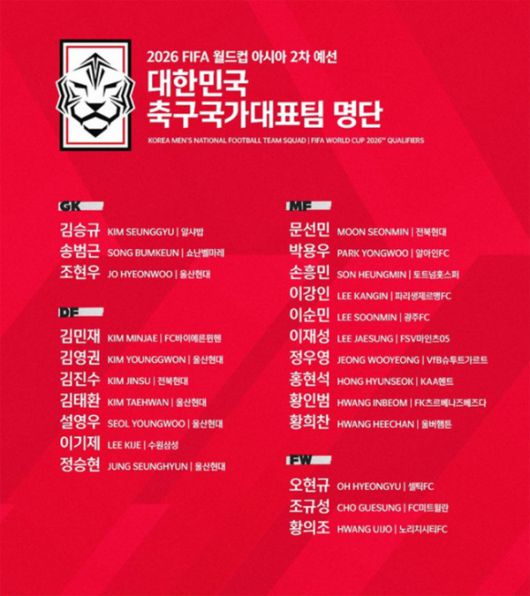 FW: 오현규(셀틱), 조규성(미트윌란), 황의조(노리치 시티)