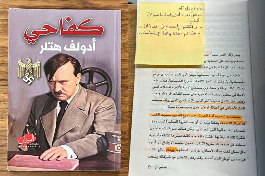 보도에 따르면 아랍어판 마인 캄프는 가자지구 한 주택의 어린이 방에서 시신으로 발견된 하마스 대원의 소지품 중 하나로 알려졌다. 이스라엘 방위군(IDF)은 12일 "하마스는 유대 민족을 말살시킨 장본인인 히틀러의 이념을 받아들였다"면서 문제의 책 사진과 함께 밑줄치며 공부한 흔적까지 공개했다.
