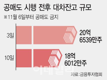 지난 6일부터 한시적으로 공매도가 전면 금지되면서 공매도를 위한 차입 목적의 대차 거래가 줄면서 9월부터 20억주 수준을 유지해오던 대차 거래 잔고가 18억대주 수준으로 감소했다는 분석이다.