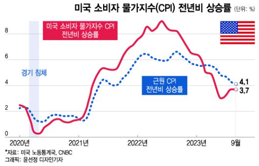 미국의 지난 10월 CPI는 14일 오전 8시30분(한국시간 14일 오후 10시30분)에 발표된다.