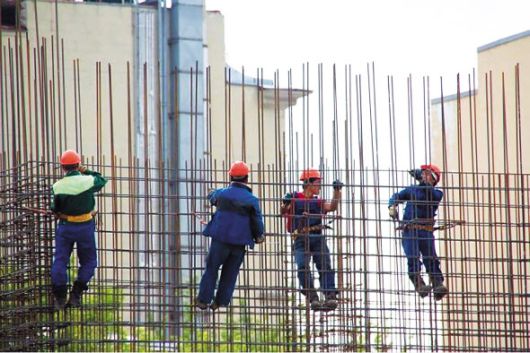 젊은 근로자들이 고층건물 건설 현장에서 작업하는 모습 [헤럴드DB] |