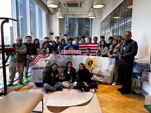 말레이시아 테크림픽 본선진출 2개팀(학생 8명), 교사 2명, 말레이시아 과학기술혁신부, 교육부, 지방공무원 팀장 등 관계자들이 지난 15일 서울 강남 레드브릭 본사에 방문해 기념사진을 찍고 있다. 레드브릭 제공 |