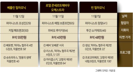 ▶‘티켓 최고가’ 베를린필, 조성진과 조화 ‘완벽’=명싱상부 세계 최고의 악단이다. 클래식 전문 사이트 ‘바흐 트랙’이 9월 11개국 15명의 클래식 전문가를 대상으로 진행한 설문 조사에서 베를린 필하모닉은 최고의 악단으로 꼽혔다. 2위는 빈 필하모닉 오케스트라였다.