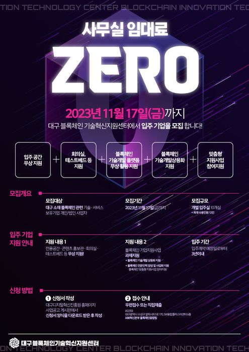 그 일환으로 미래 디지털 기술 경쟁력을 갖춘 블록체인 기업이 지역 경제성장을 주도하고 양질의 일자리를 제공할 수 있도록 지원하기 위해 대구 블록체인 기술혁신지원센터를 개소하고 입주기업을 모집한다.