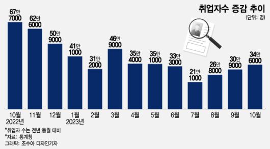 제조업 상황도 비슷하다. 제조업 취업자 수는 올해 1월부터 지난달까지 10개월 연속 감소했다. 지난 2020년 3월부터 2021년 3월까지 13개월 연속 줄어든 이후 최장 기간 감소다. 제조업 취업자 감소폭 추이를 살펴보면 △7월 3만5000명 △8월 6만9000명 △9월 7만2000명 △10월 7만7000명 등 점차 확대되는 추세다.