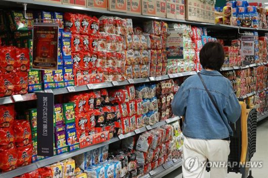 K-콘텐츠 확산에 한국 라면 인기 (서울=연합뉴스) 진연수 기자 = 한국 인스턴트 라면이 탄생한 지 60년이 되는 날인 15일 서울 시내 한 대형마트에서 시민이 라면을 고르고 있다. 식품업계에 따르면 최근 K-콘텐츠의 영향으로 해외 수요가 급증하며 라면 수출액이 2015년부터 지난해까지 8년 연속 증가했고, 올해는 1∼7월 집계된 수출액이 5억2천만달러로 동기간 기준 사상 최대치를 기록했다. 2023.9.15 jin90@yna.co.kr (끝) /사진=연합뉴스 |
