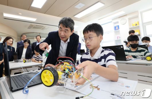 이주호 사회부총리 겸 교육부 장관이 9일 충남 천안 불당초등학교를 방문, 늘봄학교 프로그램을 참관하고 있다. (교육부 제공) 2023.8.9/뉴스1 |