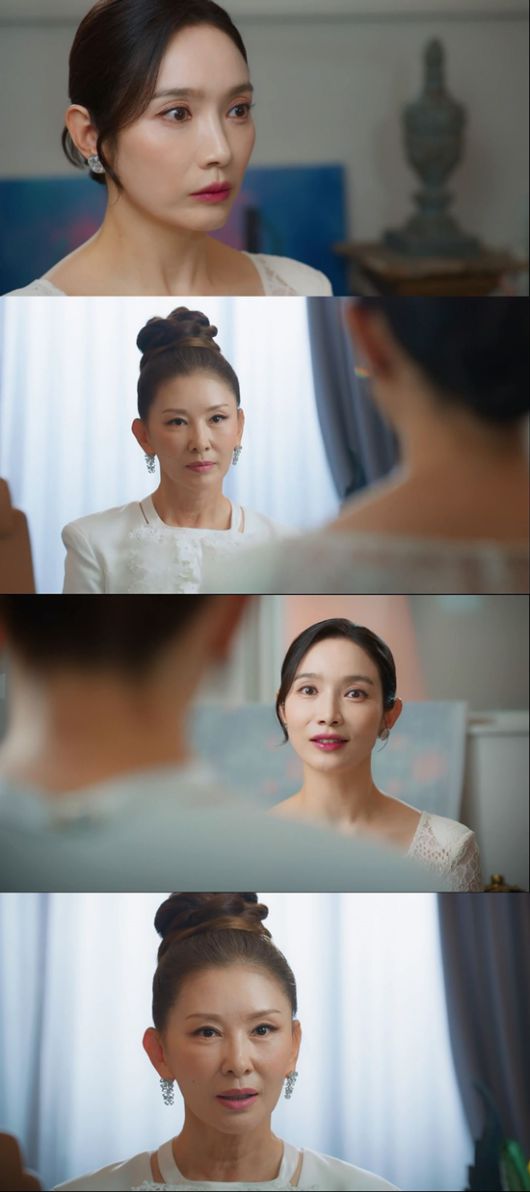 이정혜는 여유 있는 미소를 지어 보이며 차연화를 바라보고, 차연화는 그런 이정혜에게 가소롭다는 눈길을 보내 팽팽한 기 싸움을 펼친다. 두 사람은 우아한 재벌 사모님들의 카리스마를 드러내며 한 치의 물러섬도 없이 맞섰던 터. 하지만 이내 차연화의 한마디에 이정혜가 놀란 표정을 드리워 긴장감을 끌어올린다. 과연 이정혜는 차연화에게 어떤 말을 들었을지, 두 사람의 카리스마 독대는 어떤 후폭풍을 가져올지 궁금증이 치솟는다.