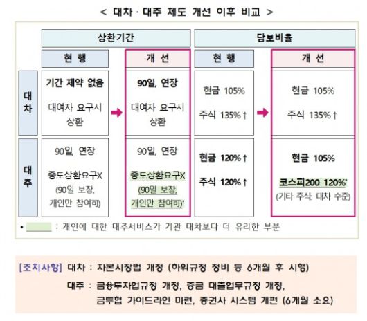 개선 방향에 따르면, 핵심은 대차와 개인 대주의 주식차입 상환기간 및 담보비율을 통일하는 것이다.