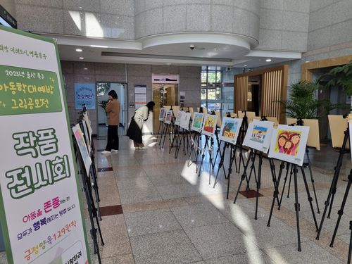 울산 북구는 아동학대예방주간을 맞아 오는 24일까지 북구청 로비에서 아동학대예방 그림공모전 작품 전시회를 마련한다.