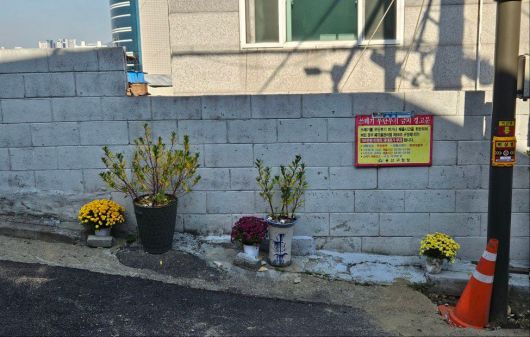 골목길에 놓여진 국화 화분/산마루 교회 제공
