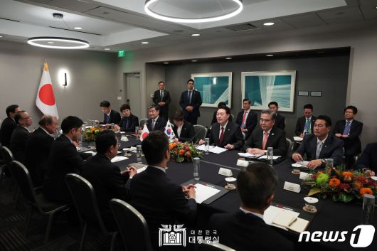 FNN 뉴스에 따르면 윤석열 한국 대통령과 기시다 총리는 16일(현지시간) 약 30분간 양국 간 연계 강화에 대해 논의했다.