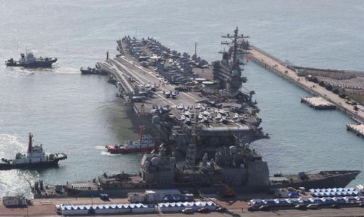 지난달 12일 미국 핵추진 항공모함 로널드 레이건함(CVN-76)이 부산작전기지에 입항하고 있다. 뉴스1 |