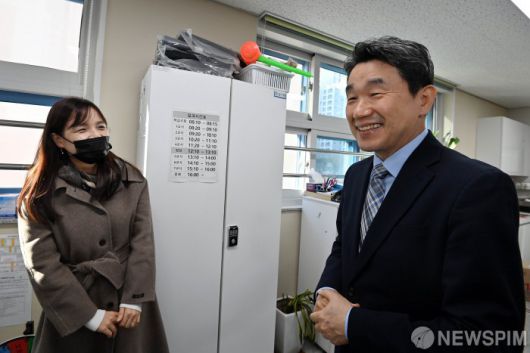 이주호 부총리 겸 교육부 장관이 24학년도 수능 준비상황 및 시험장 안전 점검차 13일 오전 서울 성동구 금호고등학교를 방문해 교사들을 격려하고 있다. [사진=뉴스핌 DB] |